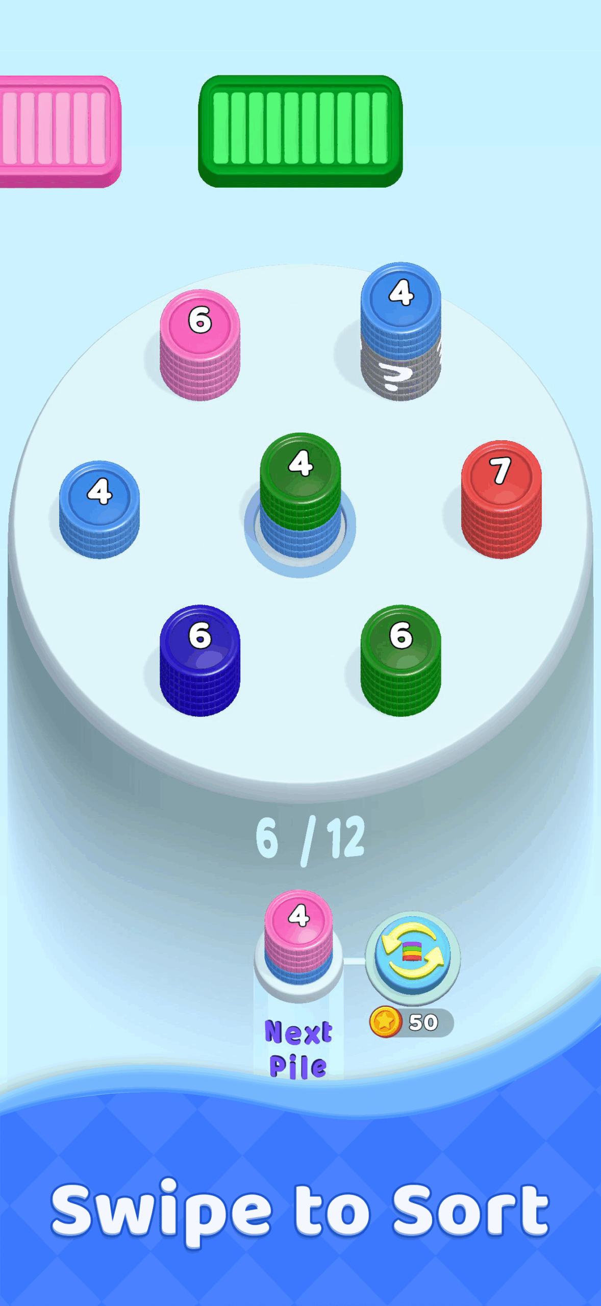 Drop stacks onto a circular belt, match colors to trigger satisfying auto-merges, and fill the active tray without overflowing as each level becomes more challenging.