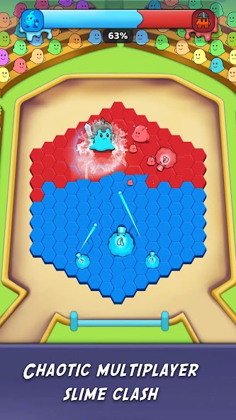 Claim hex tiles by spreading your slime, blocking enemy routes, and cutting off their ability to grow. Every match becomes a tactical puzzle with real-time pressure.