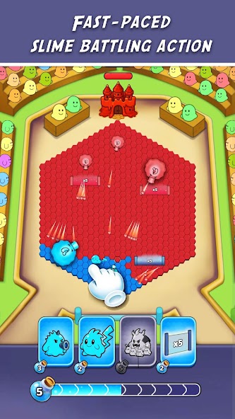 Step into quick, action-packed tile battles on a vibrant hex battlefield. Place slimes at the right time and right spot to control the flow of battle and cut off enemy expansion.