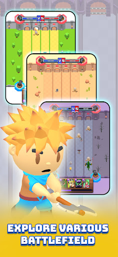 Engage with a variety of characters like Sword Warriors, Archers, Mages, Giants, and Goblins.